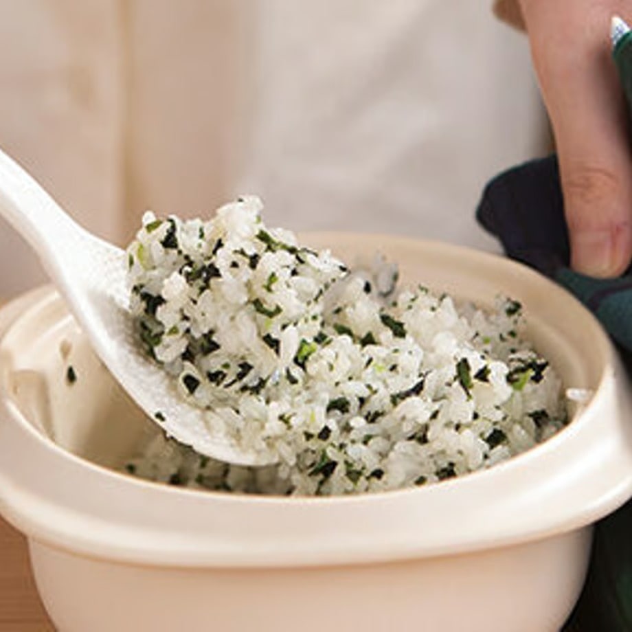 炊き上がったごはんに混ぜ合わせると鮮やかな「緑色」に戻ります。